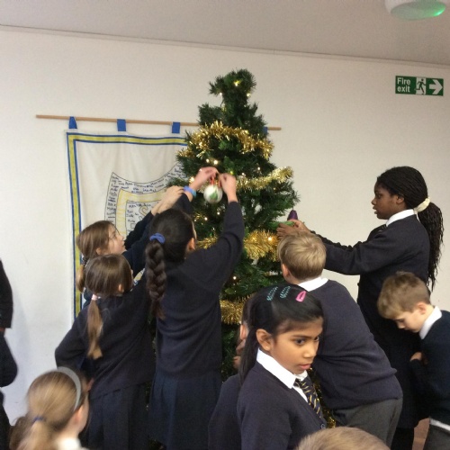 The school council did a great job helping to sort and display the food donated for the foodbank!